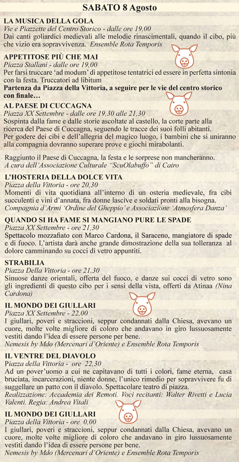Cairo Medievale è un evento organizzato, gestito e realizzato dalla Pro Loco di Cairo Montenotte www.cairomedievale.it Per informazioni: info@cairomedievale.it - cairoproloco@libero.it