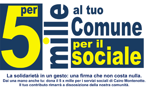 In questo contesto, la scelta di destinare il 5 per mille alle attività sociali del Comune di Cairo Montenotte costituisce un gesto di concreta solidarietà nei confronti dei propri concittadini e della propria comunità. Non si tratta di una ulteriore tassa, ma della scelta di destinare una quota dell’Irpef versata, appunto il 5 per mille, al sostegno degli interventi a favore delle famiglie a basso reddito, dei bambini, degli anziani, degli adulti a rischio di esclusione, dei disabili che appartengono alla nostra comunità.
