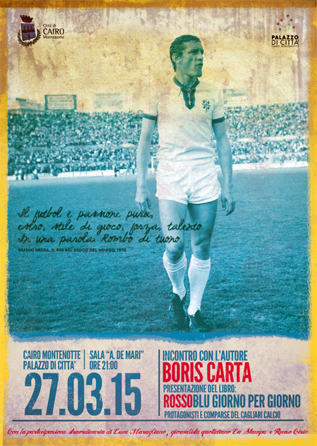 Venerdì prossimo, 27 marzo 2015 alle ore 21, si parlerà di calcio nella Sala De Mari del Palazzo di Città di Cairo Montenotte, in occasione della presentazione del libro "Rossoblu giorno per giorno. Protagonisti e comparse del Cagliari Calcio".