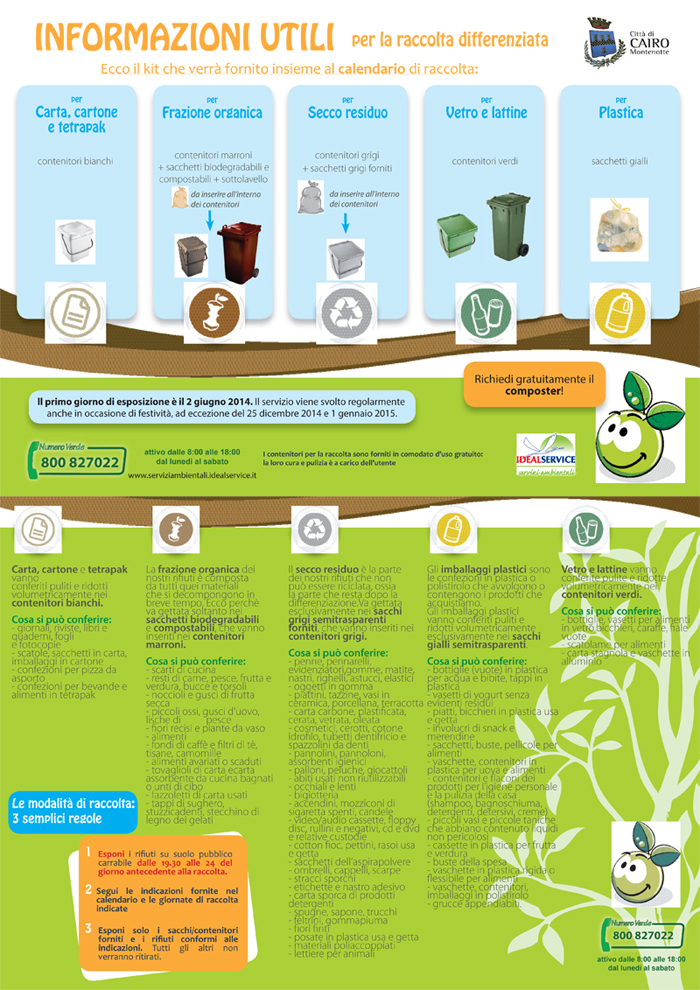 [highlight bg="#ddff99" color="#000000"]A partire dal 2 giugno è possibile ritirare il kit per la raccolta presso la sede locale della ditta Ideal Service che ha in gestione il servizio, in Corso Stalingrado nr 50.[/highlight]