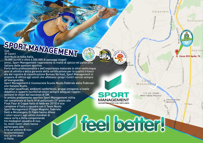 Dal 13 aprile 2015 riprende l'attività della Piscina Comunale di Cairo Montenotte in Via XXV Aprile nr 76. Da mercoledì 8 aprile fino a sabato 11 sarà aperta la segreteria con orario dalle 10 alle 12 e dalle 14 alle 19, mentre domenica 12 aprile solo al mattino dalle 10 alle 12, per dare informazioni sui corsi e le iscrizioni. In programma corsi di nuoto, acqua fitness e una scuola di pallanuoto.