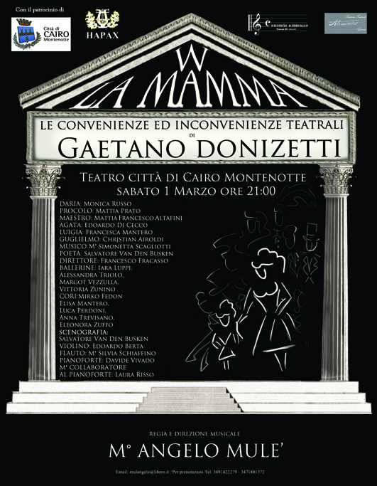 L’associazione musico teatrale HAPAX presenta lo spettacolo teatrale “Le convenienze ed inconvenienze teatrali” di Gaetano Donizetti diretto dal maestro Angelo Mulé: sabato 1 marzo alle ore 21 nel Teatro Città di Cairo Montenotte