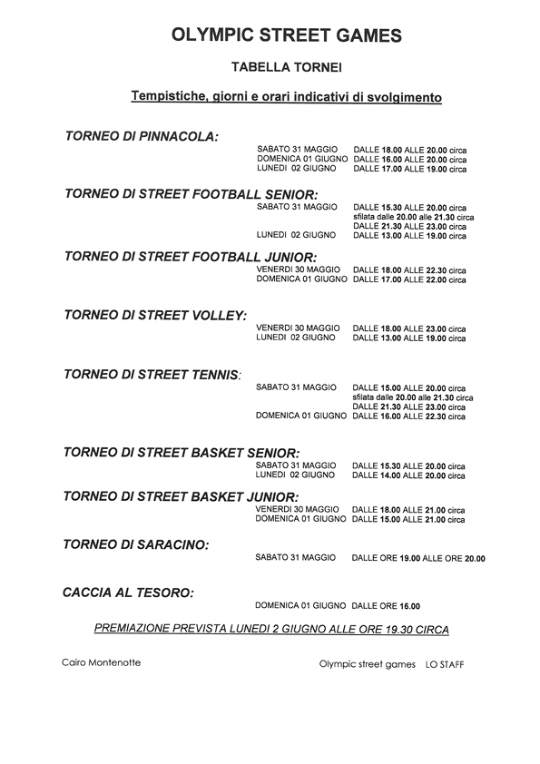 Olympic Street Games: gli orari dei tornei