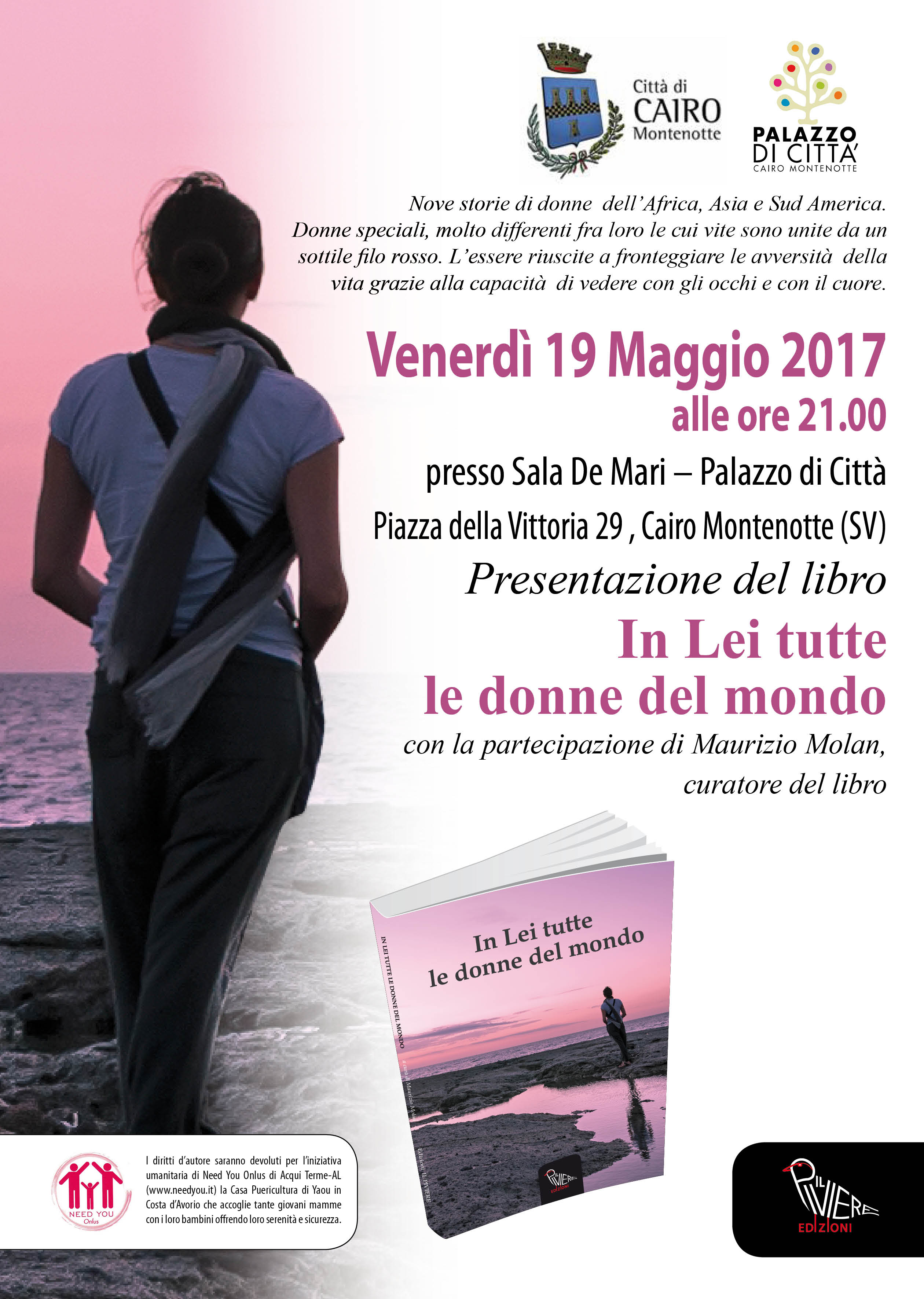 Venerdì 19 maggio alle ore 21,00 presso la Sala De Mari di Palazzo di Città, il Dott. Maurizio Molan presenterà il libro “In Lei tutte le donne del Mondo”, che racconta la storia di nove donne dell’Africa, dell’Asia e del Sudamerica.