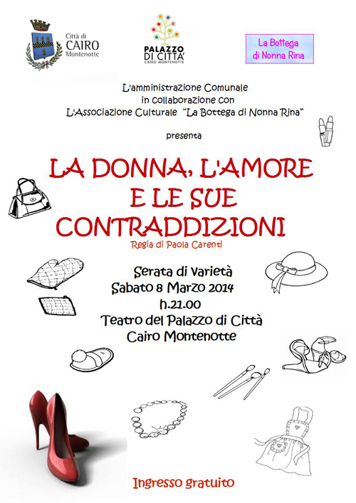 invita tutti alla serata di varietà “La donna, l’amore e le sue contraddizioni”: la donna che ama: è questo l’argomento predominante della serata. L’amore per gli uomini, per la casa, per i figli, per la famiglia, per il lavoro, per lo shopping…