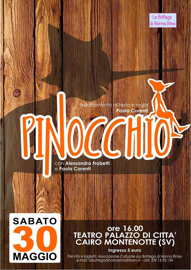 Trovando un ceppo di legno molto particolare, il falegname Geppetto decide di farne un burattino e di chiamarlo Pinocchio. Questi, magicamente, è in grado di camminare, di muoversi, di parlare e di combinare guai come un vero bambino. Nella speranza di avviarlo all'istruzione Geppetto, vendendo la sua casacca, compra a Pinocchio un abbecedario, ma il burattino lo rivende per andare a vedere uno spettacolo al teatro dei burattini. Qui il terribile capo della compagnia, mangiafuoco, lasciatosi impietosire dagli sgangherati racconti di Pinocchio, gli regala cinque monete d'oro. Pinocchio, vittima della sua ingenuità, viene poi adescato da una coppia di furfanti, il Gatto e la Volpe, decisi a truffarlo per impossessarsi del suo denaro. Una serie di disavventure porterà Pinocchio fino al Paese dei Balocchi in compagnia di Lucignolo, suo nuovo amico, ed infine nel ventre di una balena dove con grande sorpresa ritroverà suo padre. Fuggito dal corpo dell'animale, con l'aiuto della Fata Turchina si trasformerà finalmente in un bambino vero. Abbiamo preso spunto dalla fiaba per avvicinare i bambini al tema della sincerità insegnando loro a non dire bugie perché si sa... le bugie hanno le gambe corte e non servono a niente!!! Tutti i personaggi, insieme al pubblico, vivranno situazioni comicissime sviluppando una vera e propria festa teatrale all'insegna della gioia e dell'allegria.