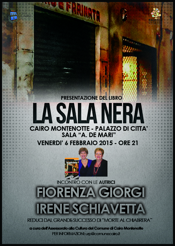Venerdì 6 febbraio 2015 alle ore 21 presso la Sala A. De Mari del Palazzo di Città si terrà la presentazione del libro "La sala nera" alla presenza delle autrici Fiorenza Giorgi e Irene Schiavetta, reduci dal grande successo di "Morte al Chiabrera".