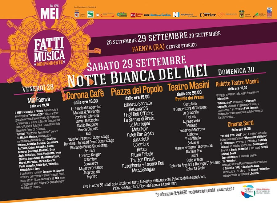 Alla fine, al termine di una serata comunque entusiasmante, Agnese Valle è giunta seconda, giocandosi la vittoria fino in fondo, alle spalle della cantautrice sarda Daniela Pes alla finalissima del “Premio dei Premi” 2018, il contest che riunisce i vincitori dei concorsi italiani di canzone d’autore e world music intitolati ad artisti scomparsi, svoltosi a Faenza. L’evento si è tenuto sabato nell’ambito del Mei di Faenza ed ha visto un podio tutto al femminile. Infatti dietro la vincitrice, che rappresentava il Premio Andrea Parodi di Cagliari, a pari merito con Agnese, vincitrice del nostro Premio Mario Panseri alla Canzone d'Autore, si è piazzata Federica Morrone (in lizza il Premio Bianca d’Aponte di Aversa). La serata è stata una occasione unica per vedere, tutti insieme, i migliori cantautori emergenti del nostro Paese, in quella che è stato definita la “Champions League” dei nuovi cantautori. Agnese Valle si è esibita con l'accompagnamento al pianoforte di Pino Marino, autore insieme a lei del brano “Come la punta del mio dito”, già vincitore a Cairo ed interpretato anche a Faenza. Inoltre, dovendo per regolamento proporre una cover a scelta di un autore italiano, Agnese ha presentato una versione straordinariamente emozionante di "Un paese di gente bambina" di Mario Panseri, dimostrando la sua classe inimitabile e qualità morali non comuni, laddove, con la scelta di proporre ad una platea così ampia il ricordo di Mario Panseri, attraverso un brano talmente intenso e bellissimo, ha onorato nel modo migliore e forse più inatteso, il "debito" di riconoscenza che la legava all'artista cui è dedicato il premio vinto in estate. Lei, che avrebbe potuto più semplicemente scegliere una cover di Ivan Graziani, peraltro già interpretata in passato, al quale era dedicata, per giunta, l'intera serata. Grande soddisfazione da parte dell'Amministrazione comunale che ha visto ulteriormente avvalorata la scelta di svoltare col Premio Panseri decisamente verso la qualità delle canzoni e degli autori, attraverso la collaborazione strettissima con la famiglia dell'artista, con scelte condivise nel segno della professionalità di tutti gli attori via via chiamati a partecipare all'evento. Un appuntamento che è già avviato alla quarta edizione, forte della vicinanza culturale con i premi Tenco e Bindi e dell'esperienza messa a frutto in questo ultimo anno. Un enorme ringraziamento ad Agnese Valle e Pino Marino per come hanno saputo rappresentare ed onorare il Premio Mario Panseri.   Immagini dell'esibizione al MEI di Faenza tratte dal profilo Facebook di Agnese Valle       Sabato 29 settembre si svolgerà a FAENZA (Ravenna) la ventitreesima edizione del MEI – Fatti di Musica Indipendente, la più importante manifestazione dedicata alla scena musicale indipendente italiana, un evento che da quasi 25 anni è punto d’incontro naturale tra le realtà che hanno fatto la storia della musica italiana degli ultimi decenni. I vincitori dei più importanti concorsi italiani di canzone d'autore e world music, intitolati ad artisti scomparsi, saranno in lizza per il prestigioso “Premio dei Premi”. Al Teatro Masini si fronteggeranno infatti Salvario in rappresentanza del Premio Bertoli, Lisbona per il Premio Bindi, i Yosh Whale per il Premio Buscaglione, La Quadrilla per il Premio Cesa/Folkest, Luchi per il Premio Ciampi, Federica Morrone per il Premio Bianca d'Aponte, i Mislead per il Premio Augusto Daolio, Giulio Wilson per il Premio Lauzi, gli Helena per il Premio Manente, Daniela Pes per il Premio Andrea Parodi e Agnese Valle per il Premio Mario Panseri. Ogni artista eseguirà un brano proprio ed una cover di un nome storico della musica italiana, in una sorta di passaggio di testimone dai grandi protagonisti della nostra canzone ai giovani che ne stanno raccogliendo l'eredità. A decidere il vincitore sarà una nutrita giuria composta da importanti addetti ai lavori italiani e internazionali e da giornalisti aderenti al Forum del giornalismo musicale. Nella serata si esibiranno anche vari ospiti di prestigio, tra cui Mauro Ermanno Giovanardi (a cui andrà un premio speciale del Mei) e il duo composto da Roberto Angelini e Rodrigo D’Erasmo con un omaggio Nick Drake. Ad aprire la serata ci sarà la giovane band “Il generatore di tensione”, presentata dalla fondazione Lucio Dalla. Il Premio dei Premi è ideato e diretto da Enrico Deregibus e Giordano Sangiorgi e vede come media-partner JamTV che realizzerà vari servizi sull’evento e Radio Popolare, che trasmetterà la serata. Fra i partner dell’evento ci sarà l'Officina della Musica e delle Parole di Milano, che, grazie ai responsabili Alberto Salerno e Tino Silvestri, offrirà al vincitore una borsa di studio del valore di euro 1500. Oltre a questo, il vincitore avrà diritto ad un pacchetto promozionale del circuito del Mei e a vari altri bonus che sono in via di definizione. Grande soddisfazione da parte dell'Amministrazione cairese per la presenza di Agnese Valle, recente vincitrice del Premio Panseri 2018, a testimonianza del valore qualitativo e del riconoscimento a livello nazionale che il Premio ha riscontrato quest'anno, quando a contendersi la vittoria, il 21 luglio scorso, sono stati artisti di indubbio talento e di comprovata capacità tecnica, come mai era accaduto in passato. La vicinanza, anche "culturale", con i Premi Tenco e Bindi, l'interazione della direzione artistica, in primo luogo dell'instancabile giornalista di Repubblica Lucia Marchiò,con l'organizzazione del MEI e l'indubbio rilievo che l'evento cairese ha ottenuto quest'anno, hanno portato il concorso dedicato al grande Mario Panseri ad una ribalta nazionale di primo piano, meritata e di buon auspicio per un futuro che si prospetta ulteriormente interessante e ricco di protagonisti di prim'ordine. In bocca al lupo ad Agnese Valle che rappresenterà idealmente tutti noi, con la sua classe cristallina, giocandosela senza paura 