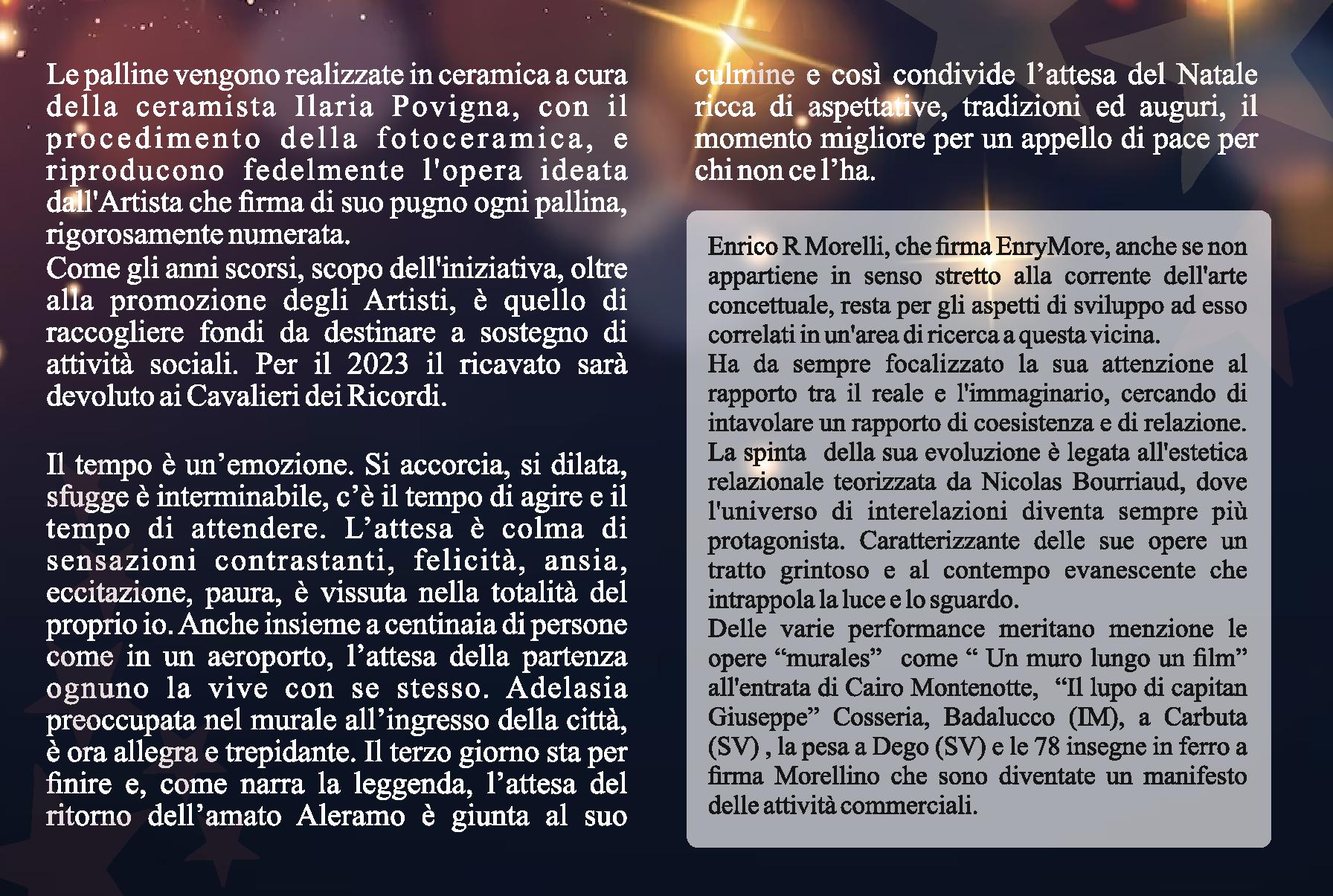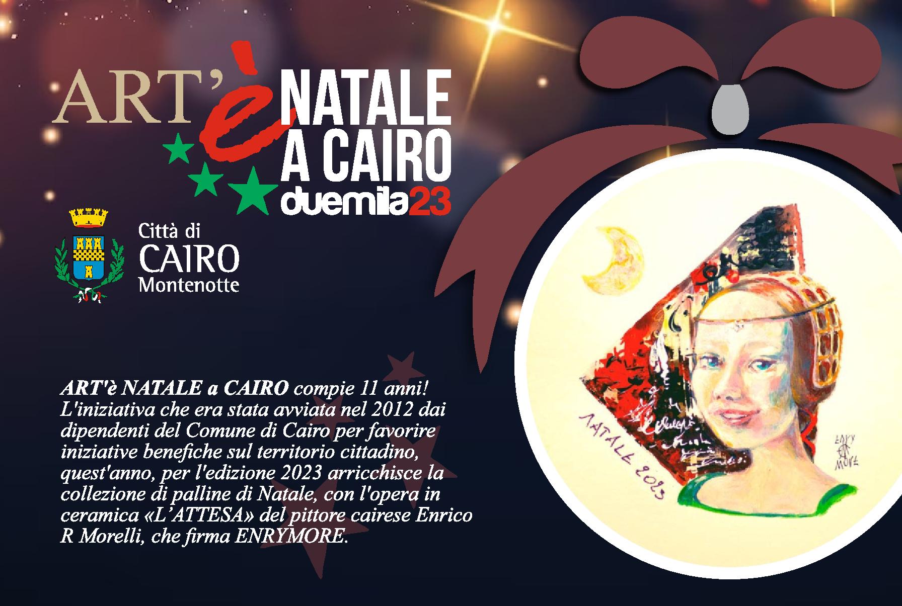 Nell’edizione 2023 dell’iniziativa “Art’è Natale a Cairo”, avviata nel 2012 dal personale e dagli Amministratori del Comune, la collezione di palline di Natale si arricchisce con la riproduzione su ceramica, realizzata dalla ceramista Ilaria Povigna, dell'opera del pittore cairese Enrico R Morelli denominata "L'ATTESA".