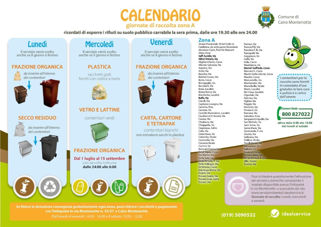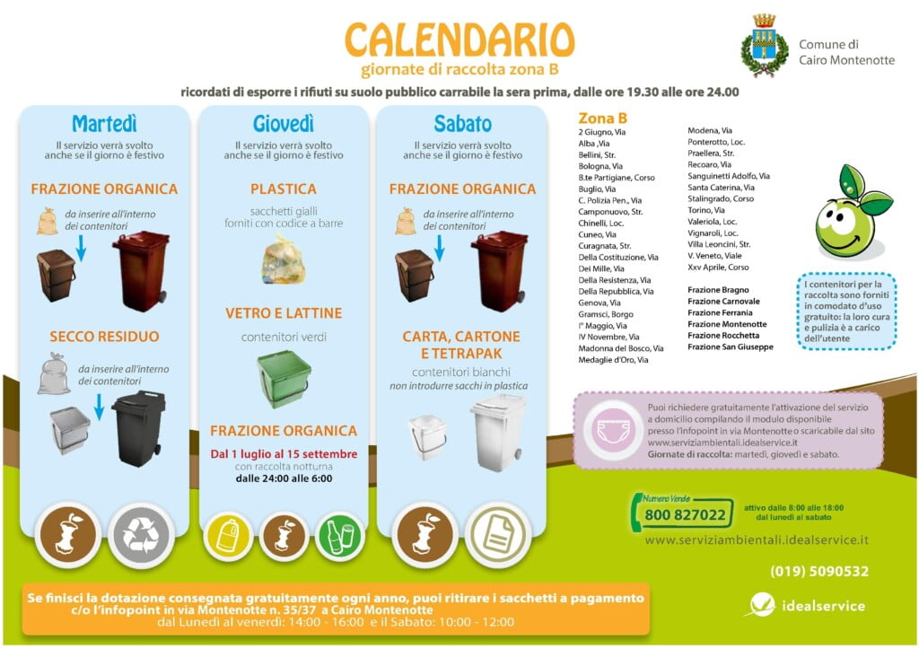 (esporre i contenitori la sera prima, dopo le ore 19.30 ed entro le 24.00)