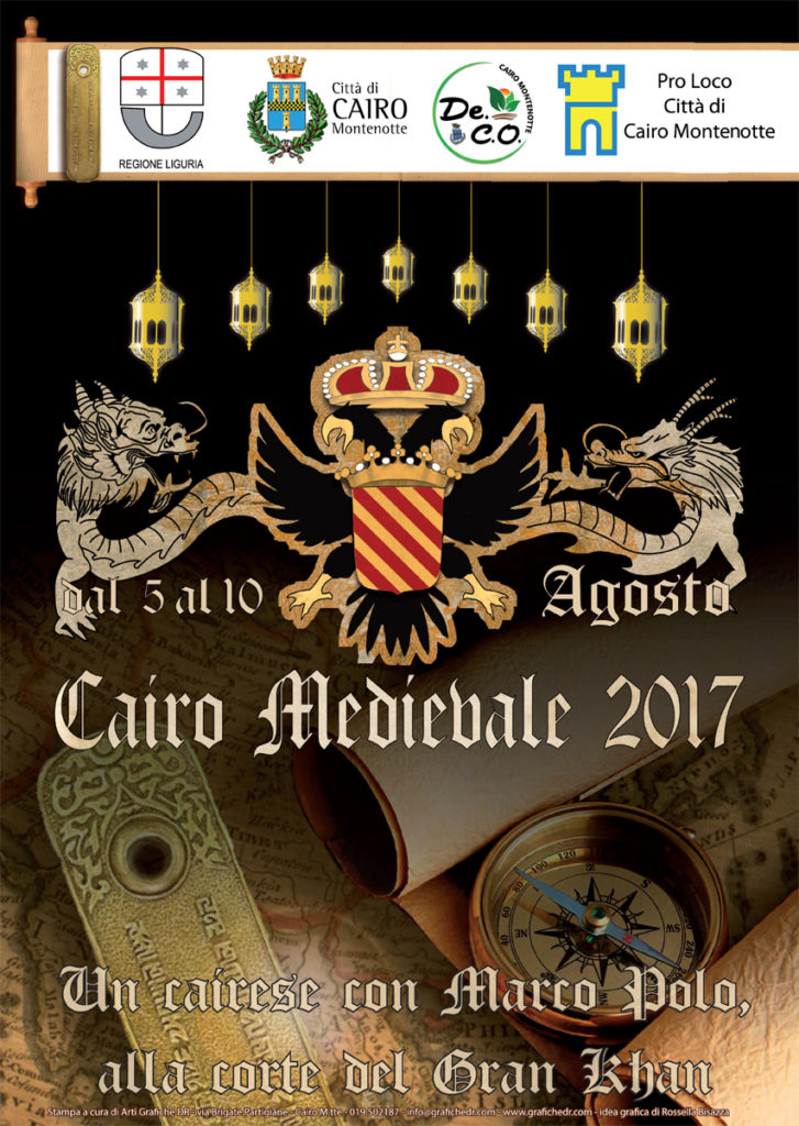 Il viaggio di esplorazione, attraverso l’invenzione di “Un cairese con Marco Polo, alla corte del Gran Khan”, sarà il tema della 26ª edizione di “Cairo Medievale” che andrà in scena, come da tradizione, dal 5 al 10 agosto 2017 nelle Piazze e nelle Via del centro storico.