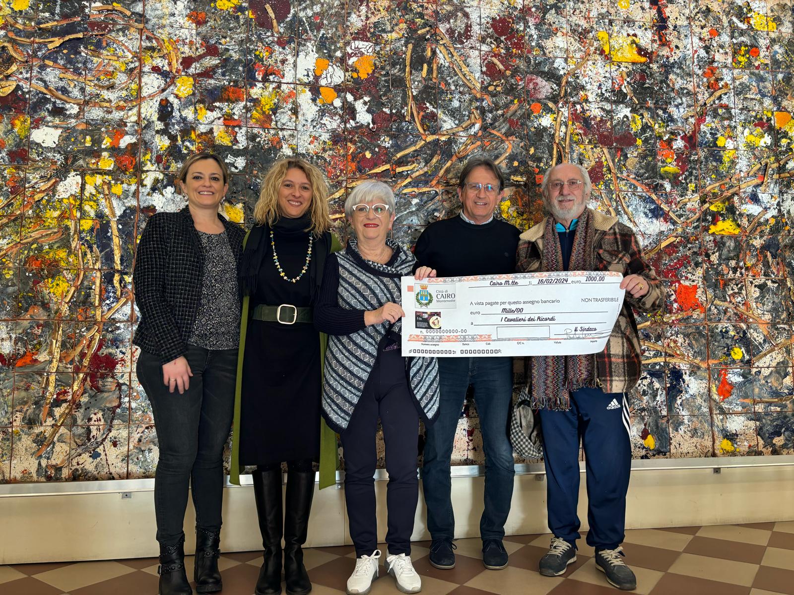 E' stato ufficialmente consegnato presso il Comune di Cairo Montenotte, il ricavato delle vendita benefica delle palline “Art’è Natale a Cairo”. La somma, di 1000 euro, è stata consegnata sotto forma di assegno simbolico a "I Cavalieri dei Ricordi". Oltre al Sindaco, in rappresentanza dell'Amministrazione comunale erano presenti gli Assessori Caterina Garra e la Consigliera Francesca Pera.