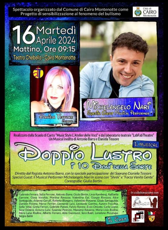 Martedì 16 aprile 2024 alle h9.15 presso il Teatro Chebello di Cairo Montenotte in collaborazione con La Franco Tessore Ass. Culturale e Music Style L’Atelier delle Voci:
