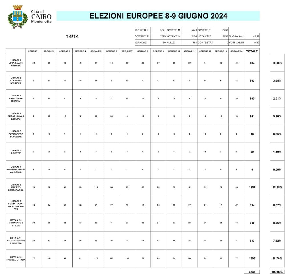 Visualizza/scarica l’analisi del voto: quadro totale, sezione per sezione, preferenze di ciascun candidato: clicca qui
