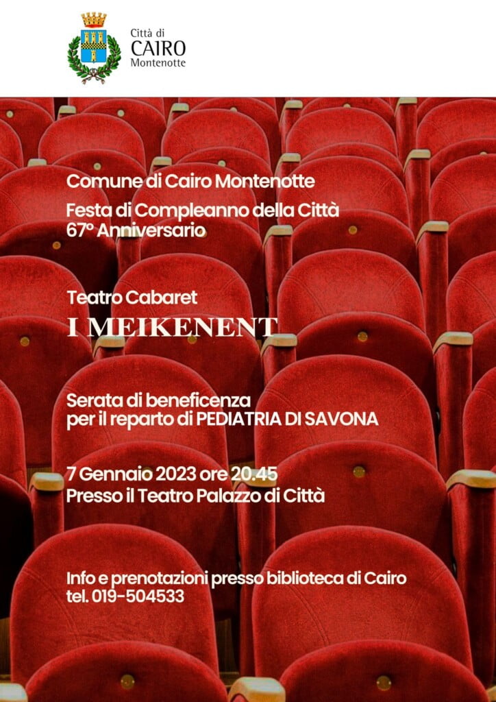 Per celebrare la ricorrenza del 67° anniversario del conferimento del titolo, appuntamento a teatro con i Meikenent alle 20.45, ingresso su prenotazione (tel. 019504533 Biblioteca Civica). Nel corso della serata verrà promossa una offerta libera in favore del reparto di Pediatria dell’Ospedale San Paolo di Savona.
