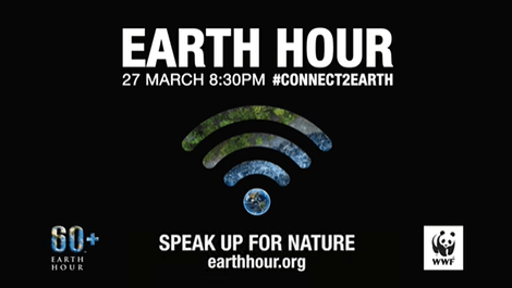 “Earth hour - l’Ora della terra”, manifestazione sostenuta dal WWF, ormai alla quattordicesima edizione, evento simbolico per evidenziare la necessità di contrastare il cambiamento climatico.