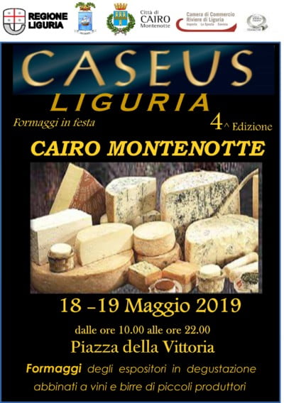 La Quarta edizione di “Caseus Liguria Formaggi in festa”, la rassegna delle eccellenze lattiero casearie italiane, torna sabato 18 e domenica 19 maggio 2019, dalle ore 10 alle 22, in Piazza della Vittoria, a Cairo Montenotte.