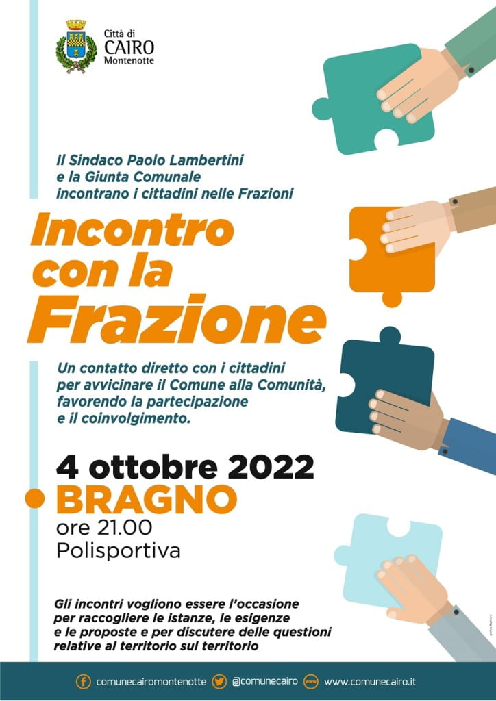- 4 ottobre 2022 BRAGNO ore 21.00 presso la Polisportiva