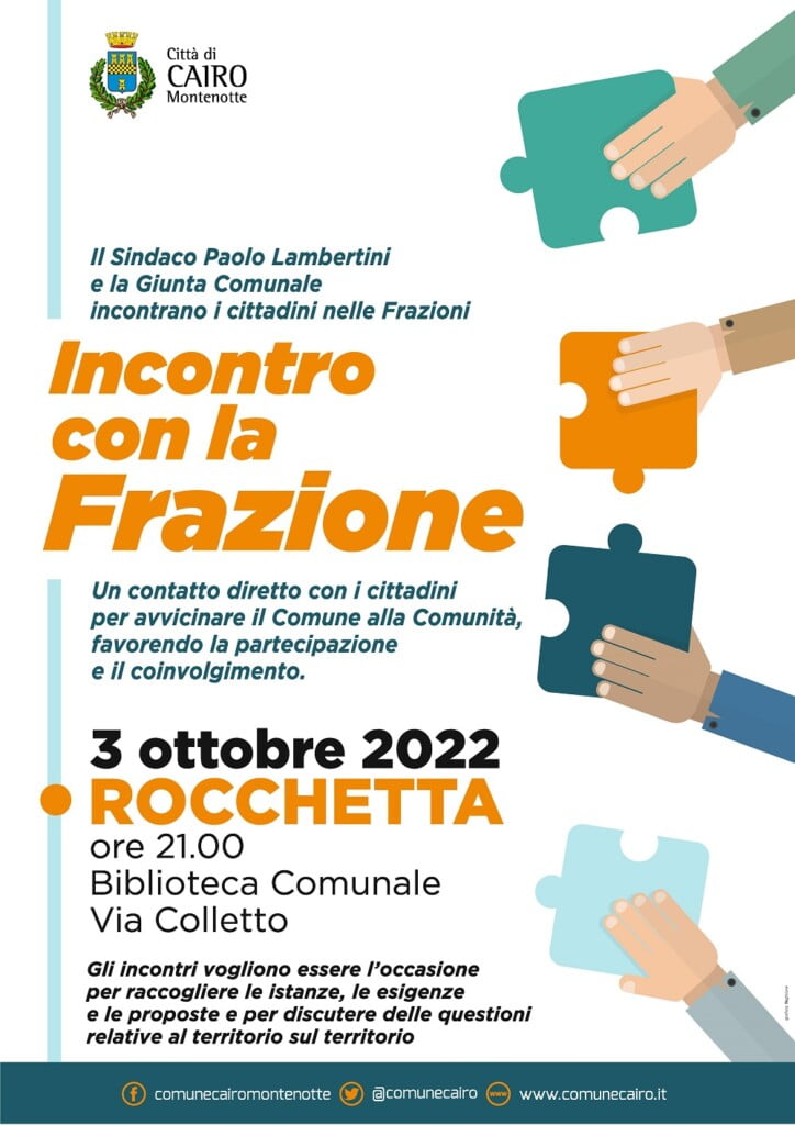 - 3 ottobre 2022 ROCCHETTA ore 21.00 presso la Biblioteca Comunale, via Colletto