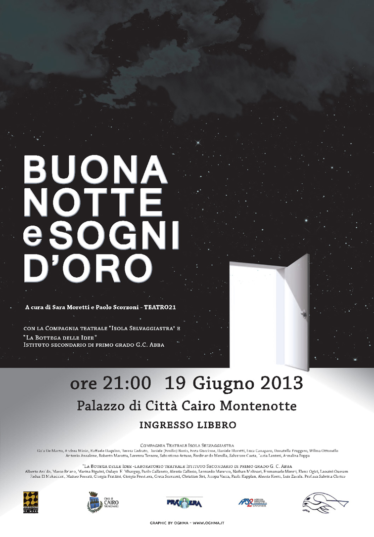 La compagnia teatrale L’Isola Selvaggiastra e il laboratorio teatrale La Bottega delle Idee della Scuola Media G.C. Abba di Cairo Montenotte hanno condiviso le storie dei propri sonni e insieme le racconteranno. Con l’avvertenza, però, che nessun sogno è interamente un sogno.