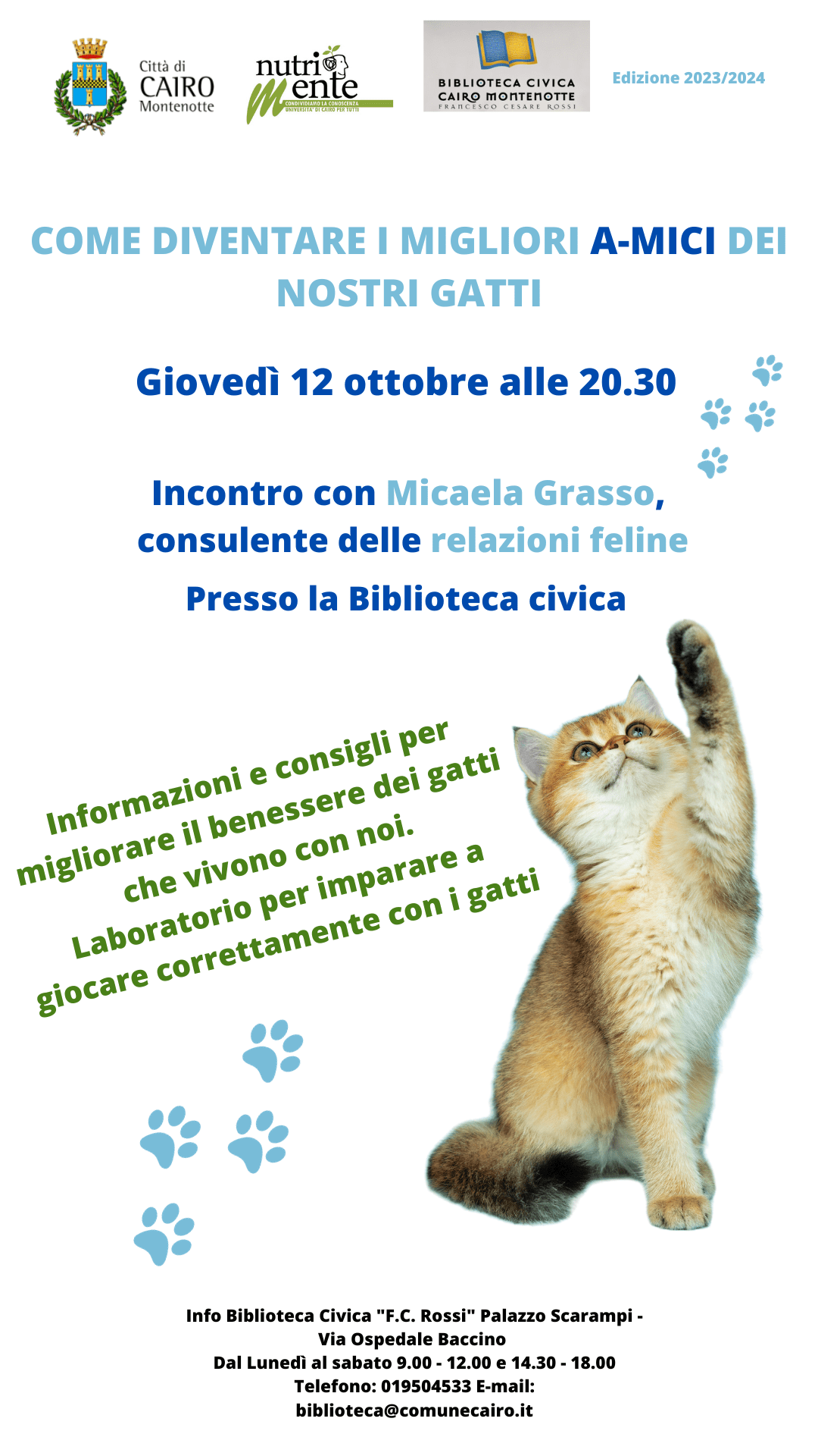 Incontro con Micaela Grasso, consulente delle relazioni feline, presso la Biblioteca Civica.