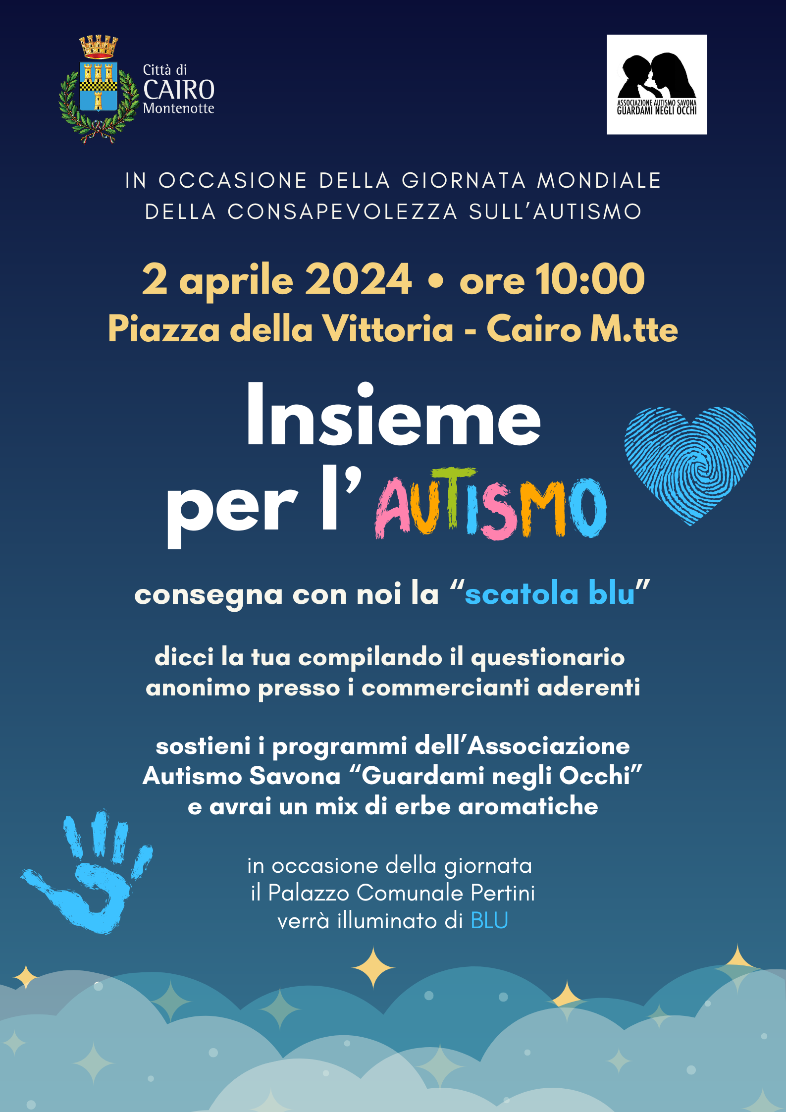 In occasione della la Giornata Mondiale della Consapevolezza sull''Autismo del 2 aprile 2024, con la collaborazione dei commercianti aderenti e dell'associazione "Guardami negli occhi Autismo Savona" , si è svolto un questionario anonimo sull'autismo. Di seguito il grafico del sondaggio svolto dagli alunni dell'istituto superiore "Federico Patetta" di Cairo Montenotte sui risultati dei questionario. Risultati sondaggio Autismo.pdf