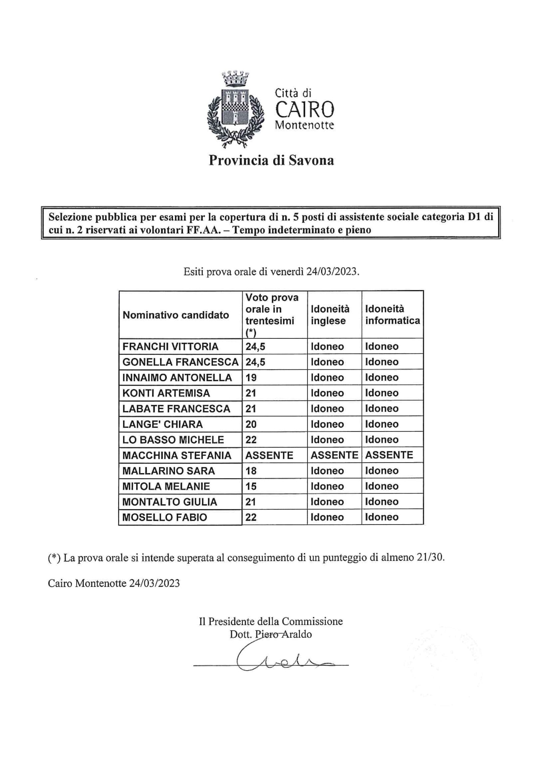 Esiti prova orale del 24/03/2023