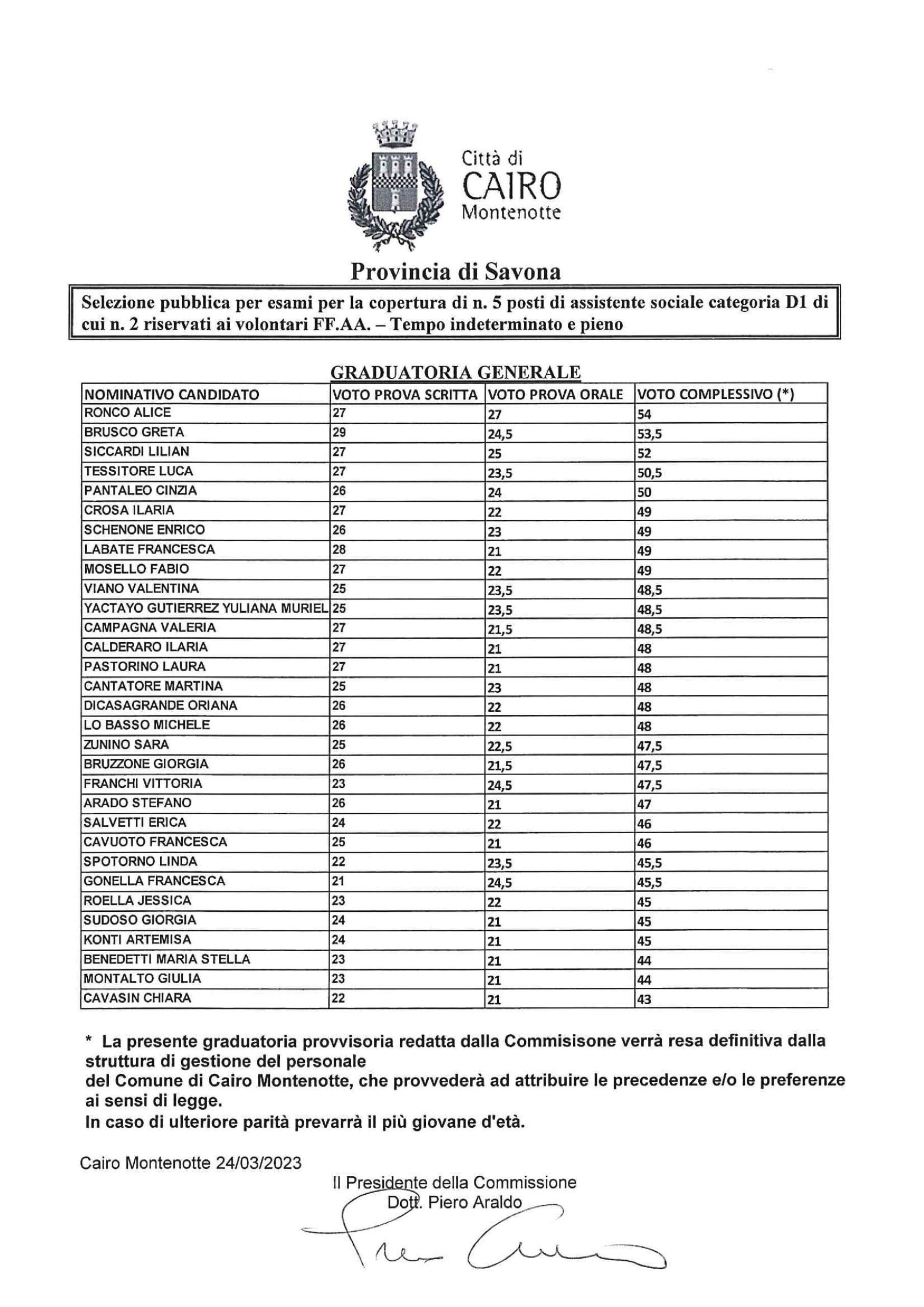 Con la determinazione nr 102 del 03/02/2023 è stata nominata la commissione esaminatrice, che risulta così composta:- Presidente: Dott. Piero Araldo Segretario Comunale di Vado Ligure;