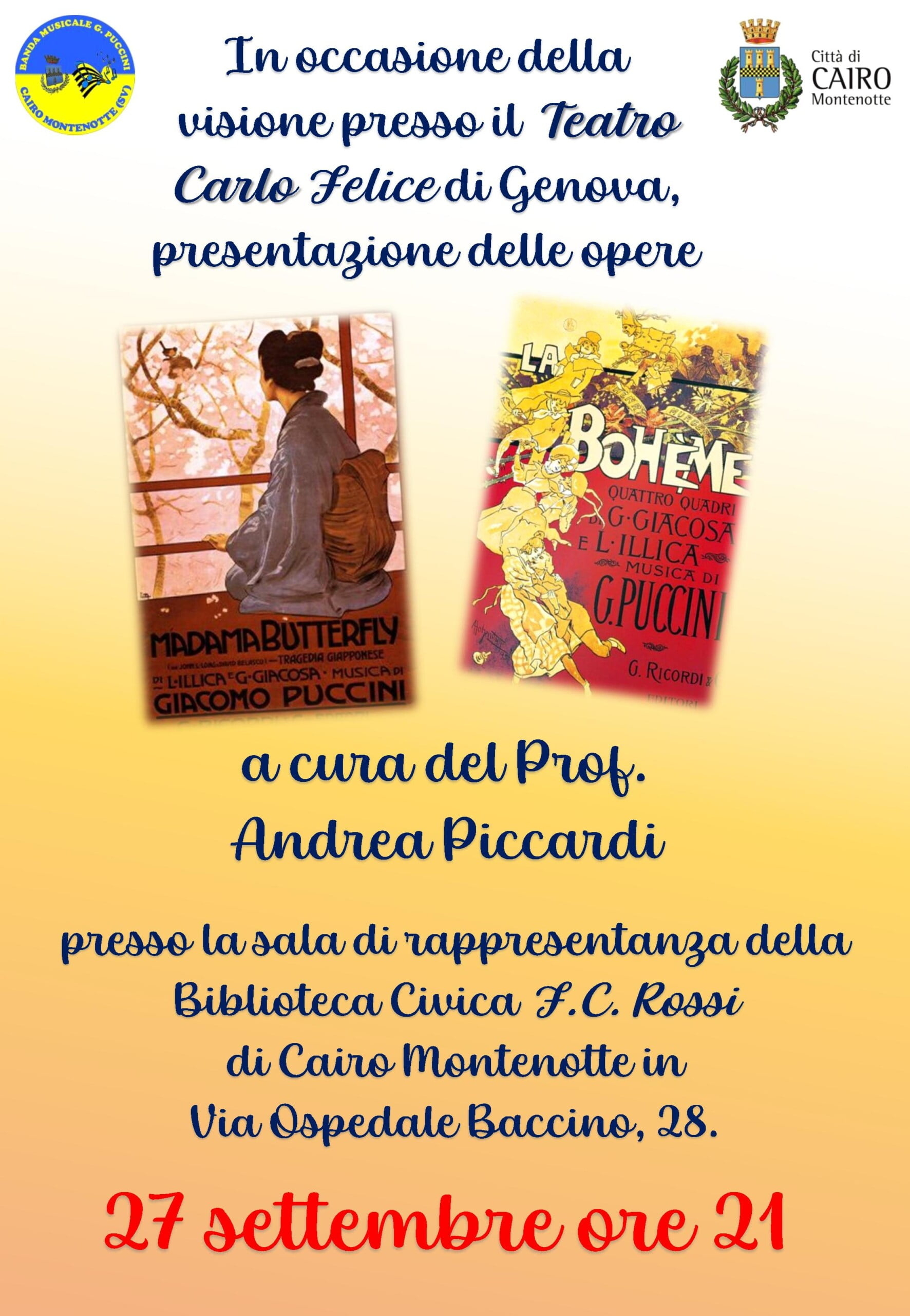 In occasione della visione presso il Teatro Carlo Felice di Genova, presentazione delle opere liriche Madama Butterfly e Bohème, a cura del Prof. Andrea Piccardi.