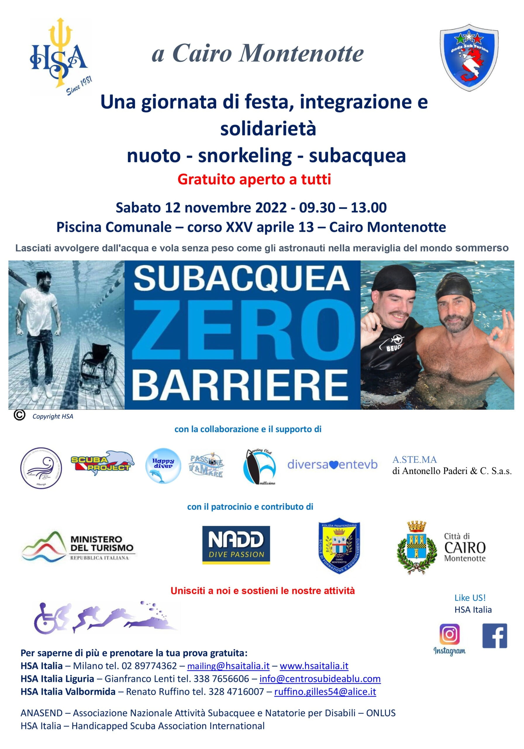 Nella giornata di sabato 12 novembre la piscina comunale sarà aperta al nuoto libero dalle ore 13 alle ore 17. Sarà possibile assistere all'evento dalle tribune.