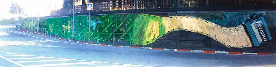 La storia industriale del nostro territorio, strumento di collegamento al Ferrania Film Museum, diverrà lo sfondo dell’intero murale. Si trasformerà in texture naturalistica con riferimenti alle varietà botaniche facendo da sfondo agli animali locali, dalla caratteristica di guardare negli occhi lo spettatore suscitando un contatto bidirezionale.