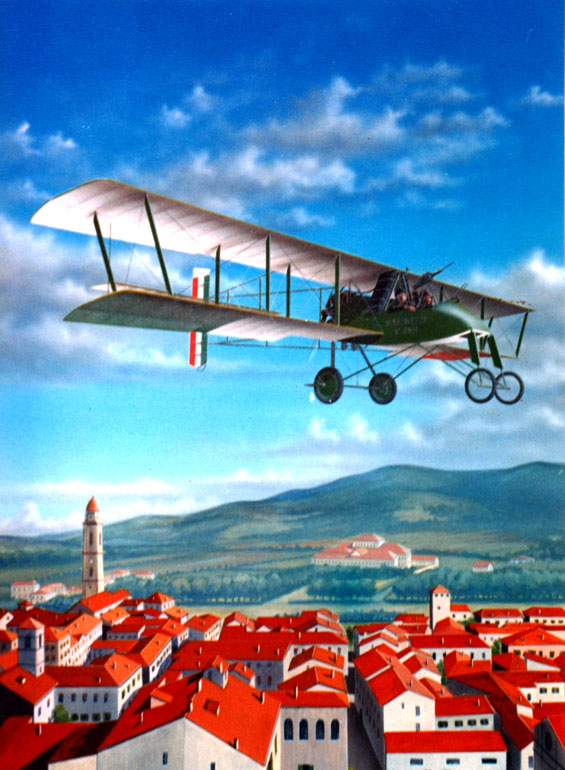 Un aereo Voisin sorvola Cairo - interpretazione artistica di Pietro Mazzardi[/caption]