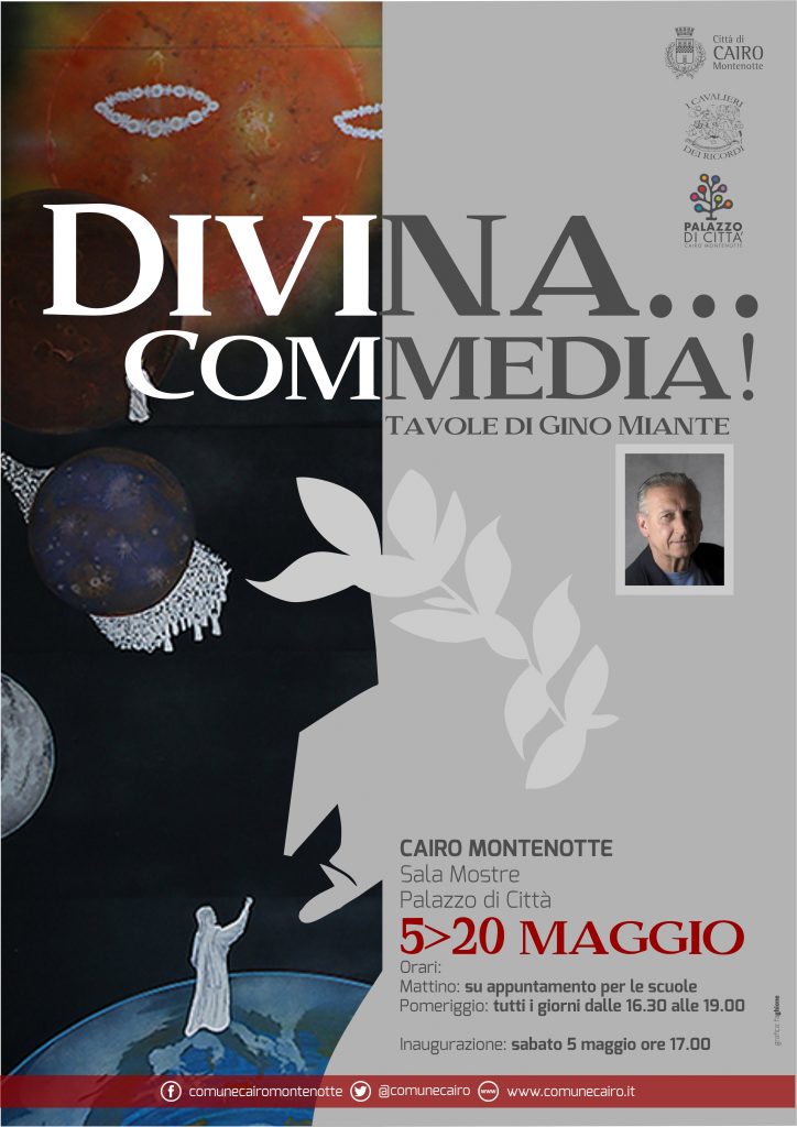 DIVINA...COMMEDIA! Esposizione di Gino Miante A cura de “I Cavalieri dei Ricordi” Sale Esposizioni Palazzo di Città 5 - 20 maggio 2018 Aperta tutti i giorni dalle ore 16,30 alle ore 19,00 Le mattine apertura su appuntamento per le scuole Inaugurazione sabato 5 maggio 2018 alle ore 17,00