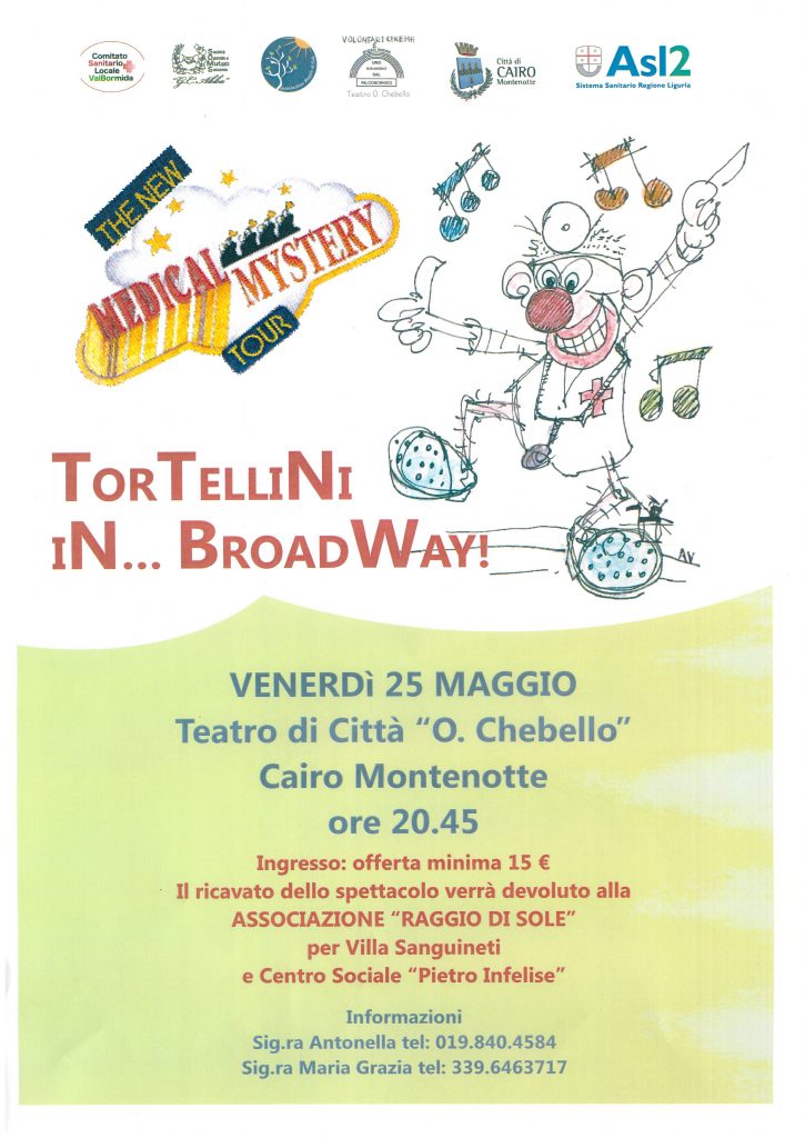 Venerdì 25 maggio, con inizio alle ore 20,45, presso il Teatro Comunale "Chebello" la compagnia Medical Mystery Tour presenta lo spettacolo di beneficenza "Tortellini in BroadWay", il cui ricavato sarà devoluto all'Associazione "Raggio di Sole" per sostenere Villa Sanguinetti e il Centro Sociale "Pietro Infelise".