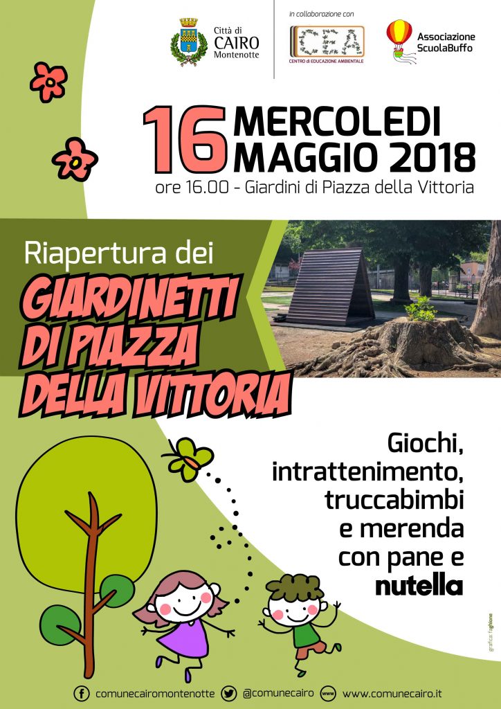 AGGIORNAMENTO 11/05/2018L'Amministrazione comunica che i lavori all’interno dei giardini pubblici di Piazza della Vittoria procedono con l’obiettivo di aprirli a brevissimo. L’aggiornamento documentato nelle foto fa riferimento alle ore 10.30 di giovedì 10 maggio, quando i rami potati sono stati in gran parte rimossi dalla pavimentazione e le operazioni di pulizia vicine al completamento. Chiediamo ai nostri piccoli ancora qualche giorno di pazienza…
